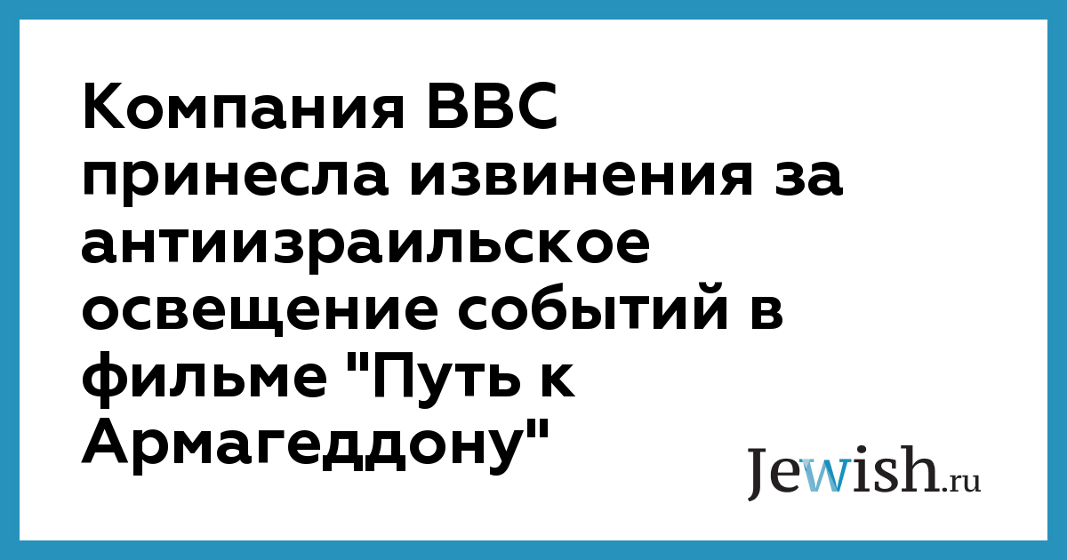 Компания ВВС принесла извинения за антиизраильское освещение событий в фильме "Путь к Армагеддону"