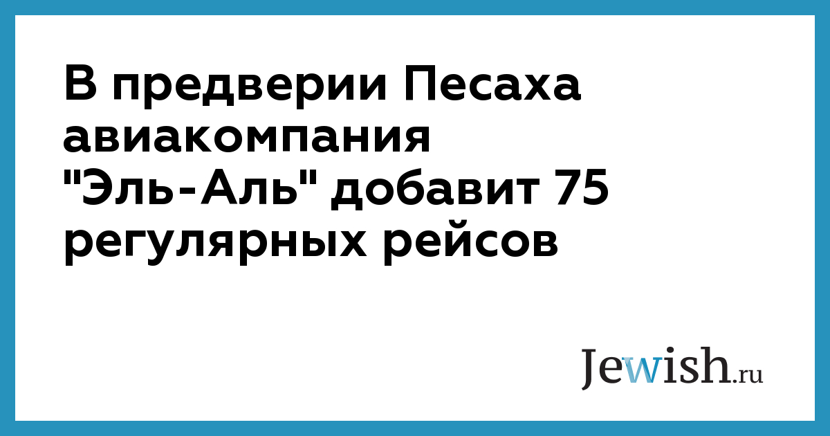 В предверии Песаха авиакомпания "Эль-Аль" добавит 75 регулярных рейсов