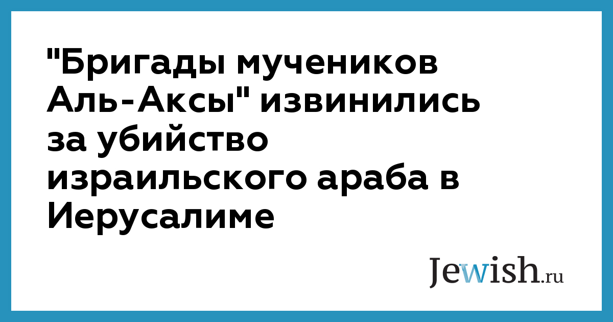 "Бригады мучеников Аль-Аксы" извинились за убийство израильского араба в Иерусалиме