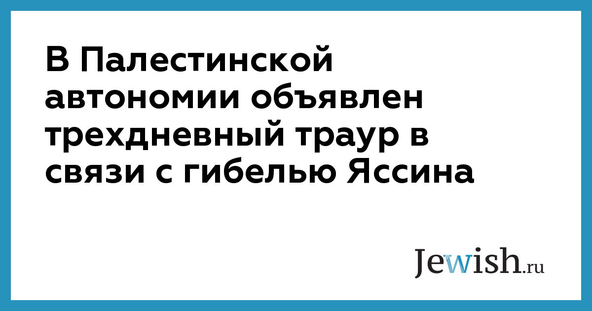 В Палестинской автономии объявлен трехдневный траур в связи с гибелью Яссина