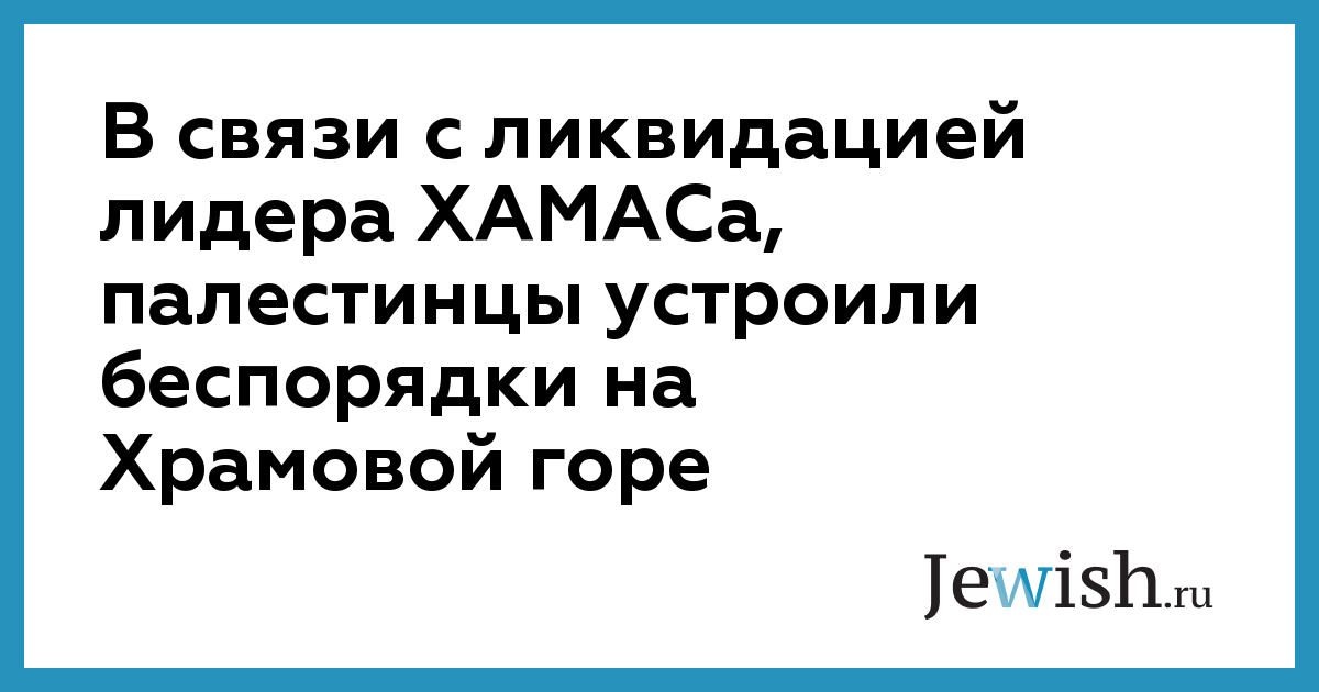 В связи с ликвидацией лидера ХАМАСа, палестинцы устроили беспорядки на Храмовой горе