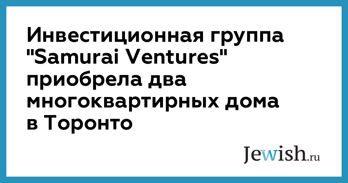 Инвестиционная группа "Samurai Ventures" приобрела два многоквартирных дома в Торонто