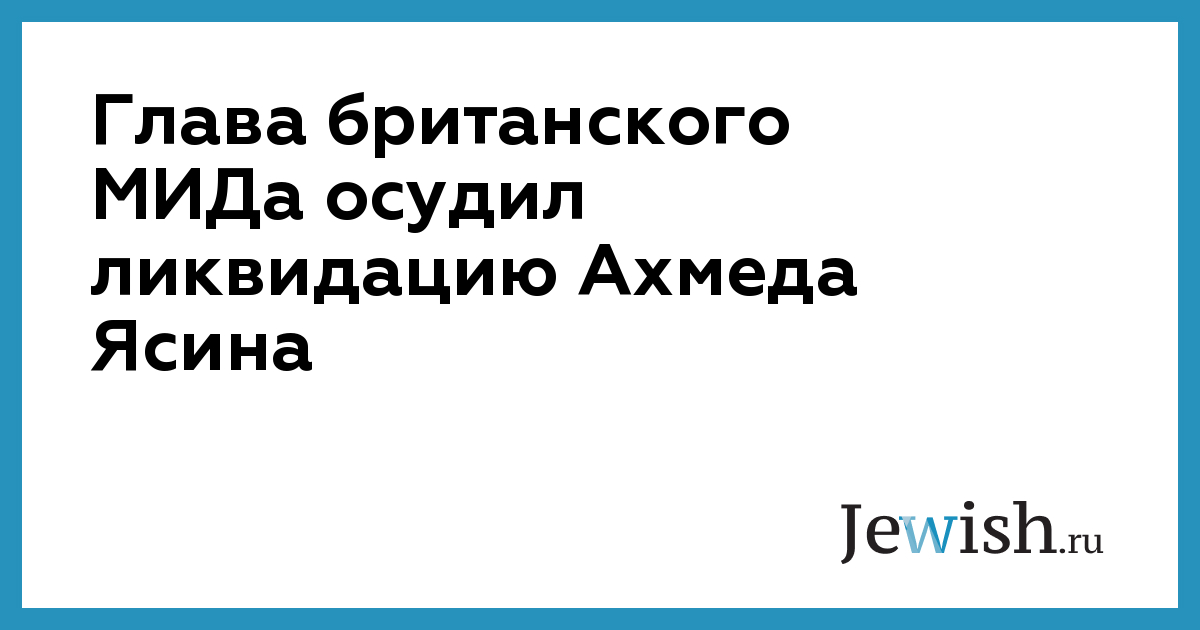 Глава британского МИДа осудил ликвидацию Ахмеда Ясина