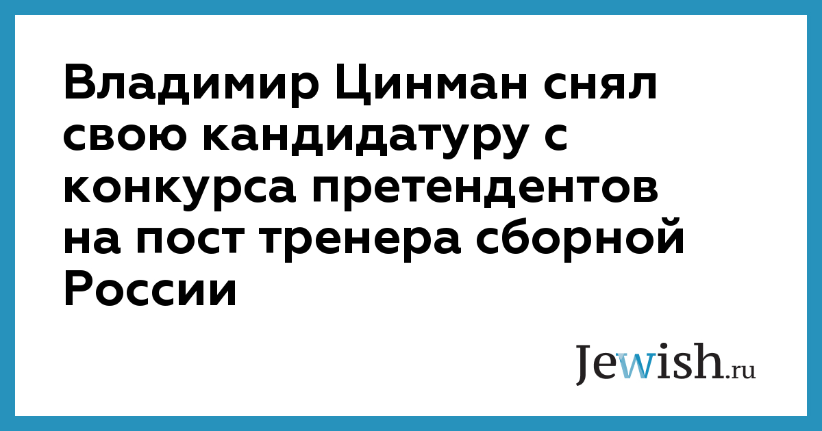 Владимир Цинман снял свою кандидатуру с конкурса претендентов на пост тренера сборной России