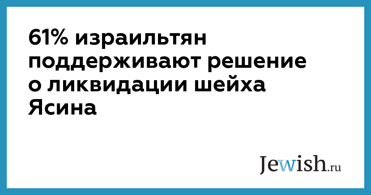61% израильтян поддерживают решение о ликвидации шейха Ясина