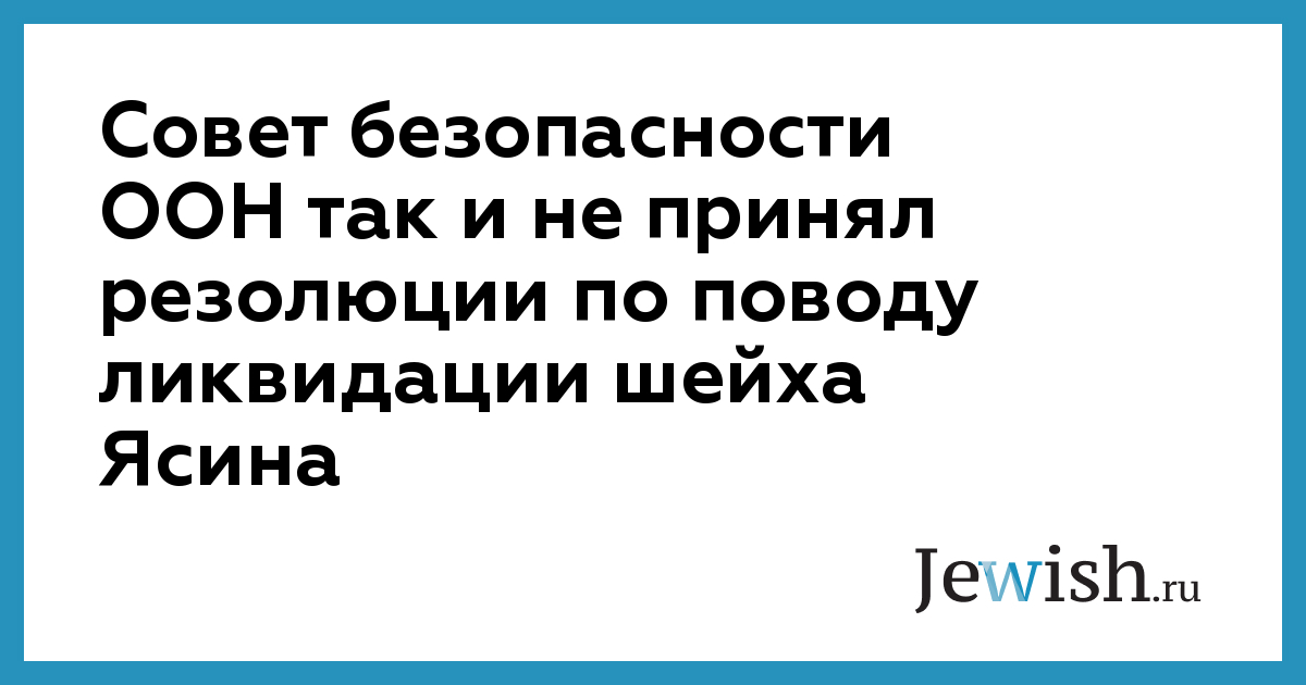 Тем не менее, большинство выступавших на заседании, которое было созвано по инициативе делегации ПА и группы арабских государств, поддержало принятие такого документа. Точку в дискуссиях поставил американский представитель Джон Негропонте, ясно дав понять, что США наложат вето на резолюцию, если в ней не будут осуждаться и теракты ХАМАС, совершенные по призыву Ясина. "Он (Ясин) проповедовал ненависть и прославлял бомбистов-смертников. Ясин не признавал права Израиля на существование", — сказал Негропонте.