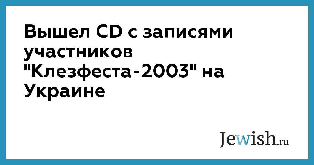Вышел CD с записями участников "Клезфеста-2003" на Украине