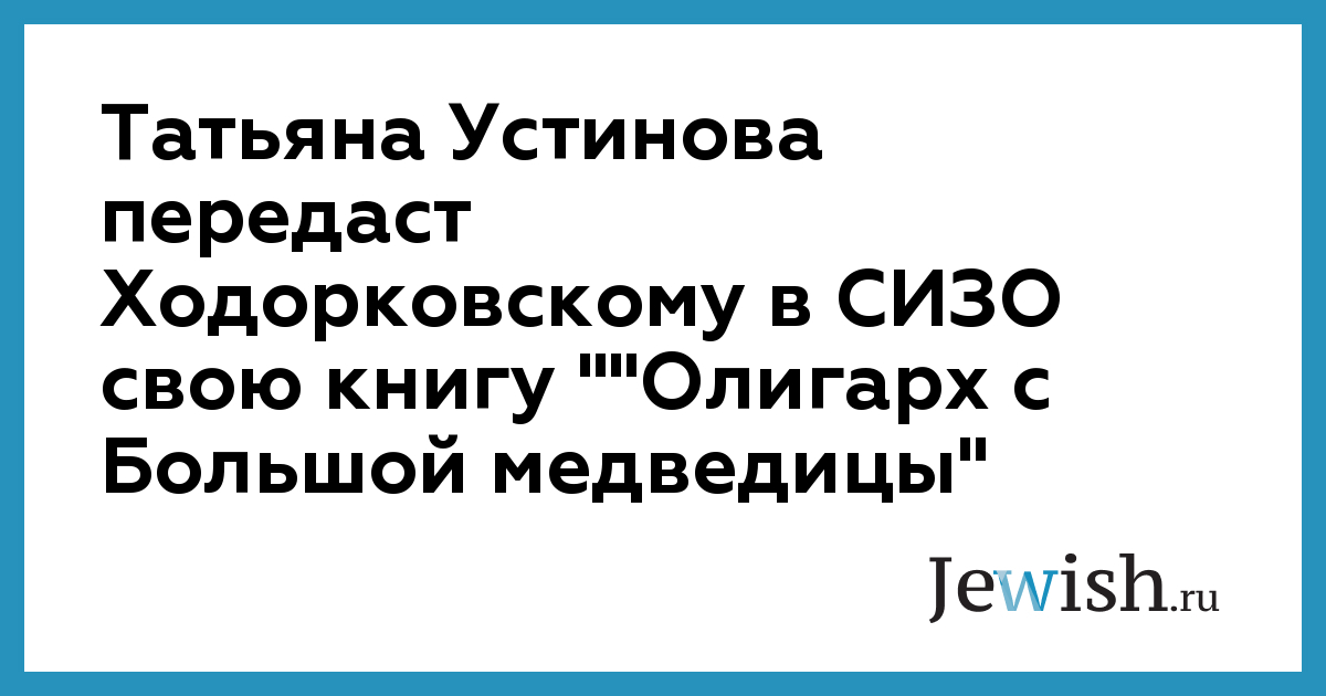 Татьяна Устинова передаст Ходорковскому в СИЗО свою книгу ""Олигарх с Большой медведицы"