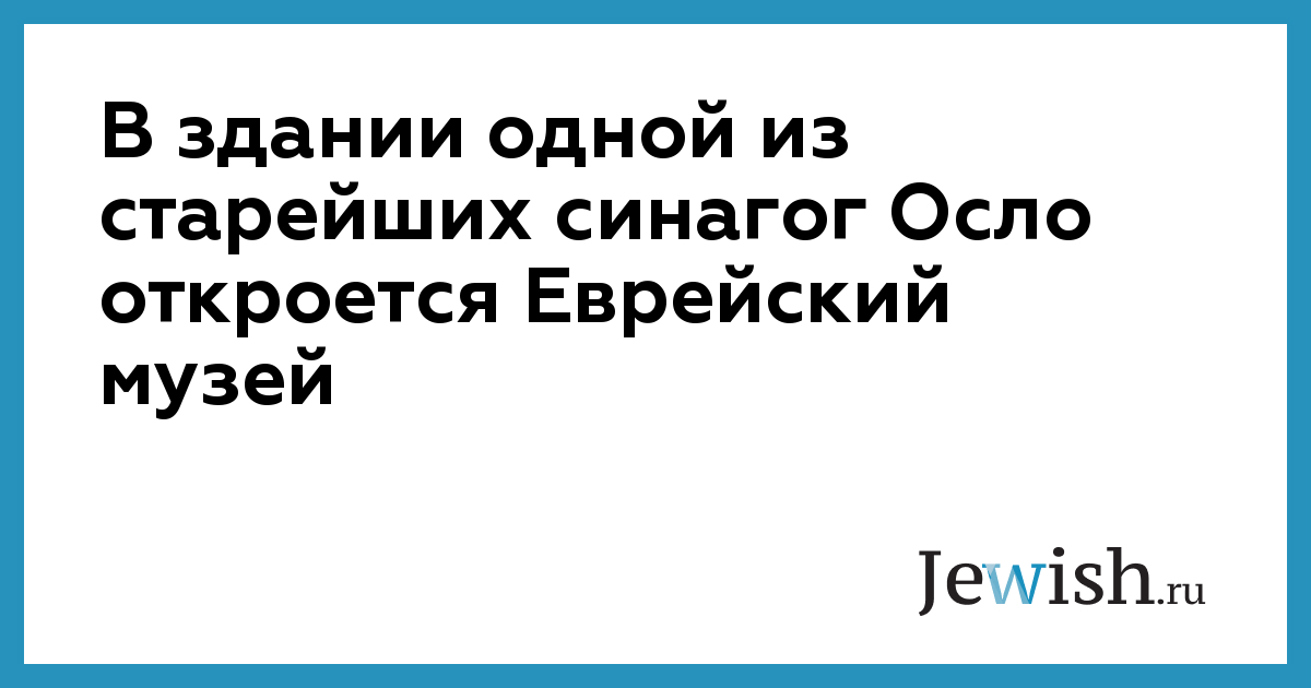 В здании одной из старейших синагог Осло откроется Еврейский музей