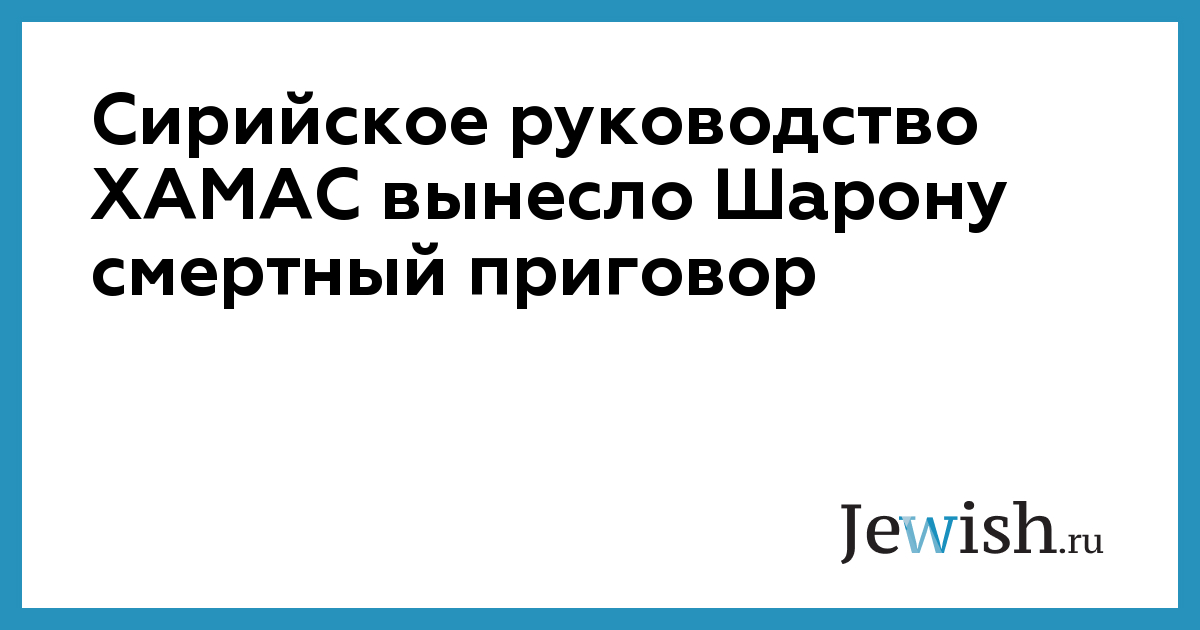 Сирийское руководство ХАМАС вынесло Шарону смертный приговор
