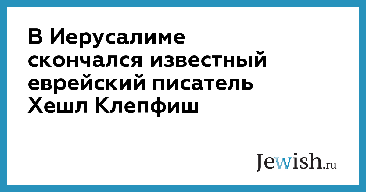 В Иерусалиме скончался известный еврейский писатель Хешл Клепфиш