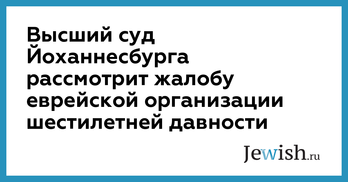 Высший суд Йоханнесбурга рассмотрит жалобу еврейской организации шестилетней давности