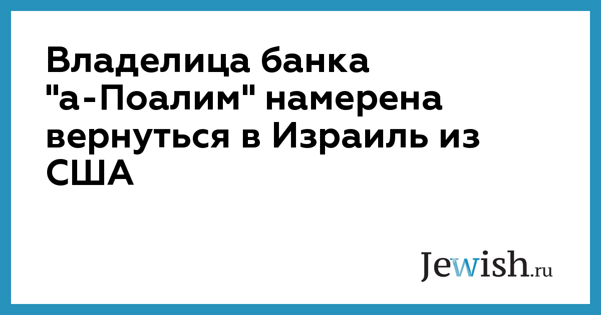 Владелица банка "а-Поалим" намерена вернуться в Израиль из США
