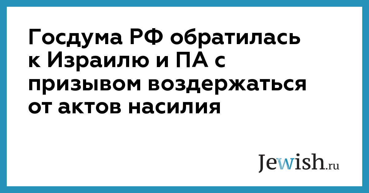 Госдума РФ обратилась к Израилю и ПА с призывом воздержаться от актов насилия