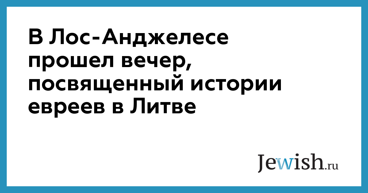 В Лос-Анджелесе прошел вечер, посвященный истории евреев в Литве