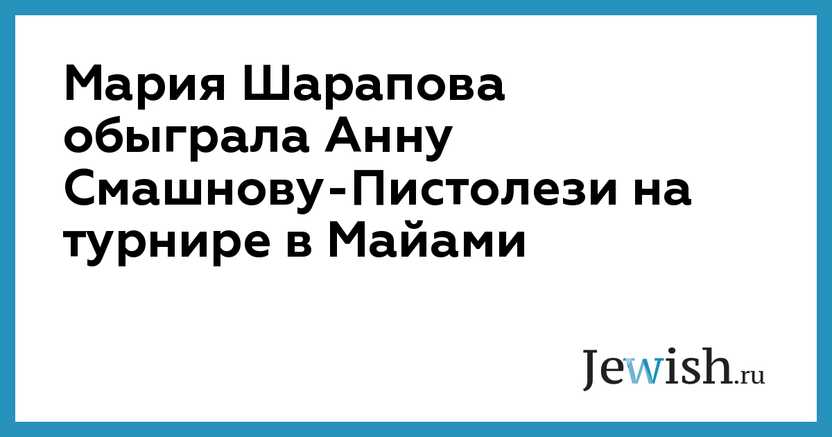 Мария Шарапова обыграла Анну Смашнову-Пистолези на турнире в Майами
