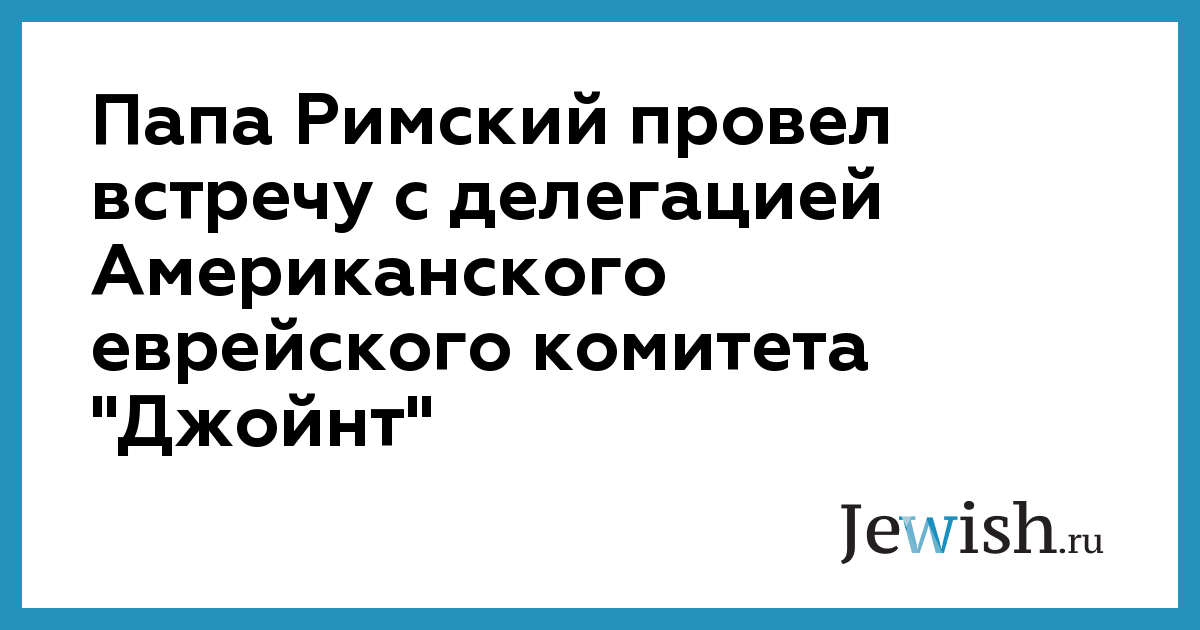 Понтифик встретился в своей резиденции в Ватикане с лидерами Американского еврейского комитета "Джойнт", который занимается распределением помощи еврейским общинам диаспоры во всем мире.