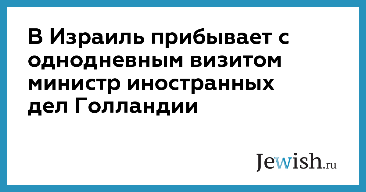Этот визит станет первым посещением Израиля главой голландского МИДа, занявшего этот пост в январе 2004 года.
