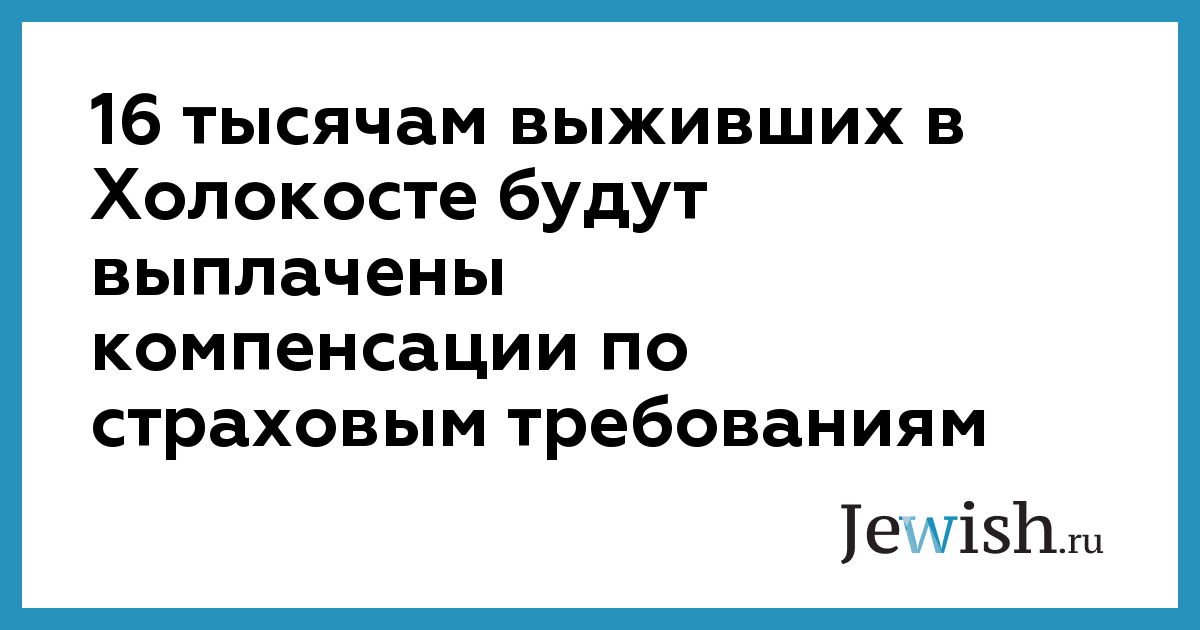 16 тысячам выживших в Холокосте будут выплачены компенсации по страховым требованиям