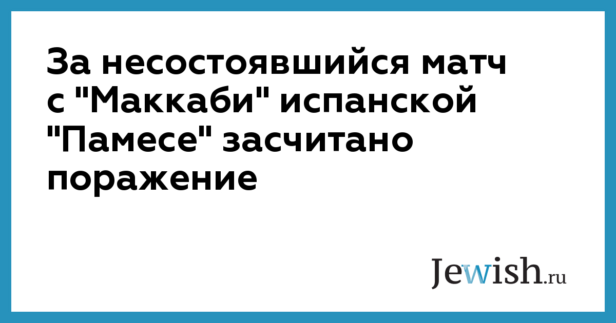 За несостоявшийся матч с "Маккаби" испанской "Памесе" засчитано поражение