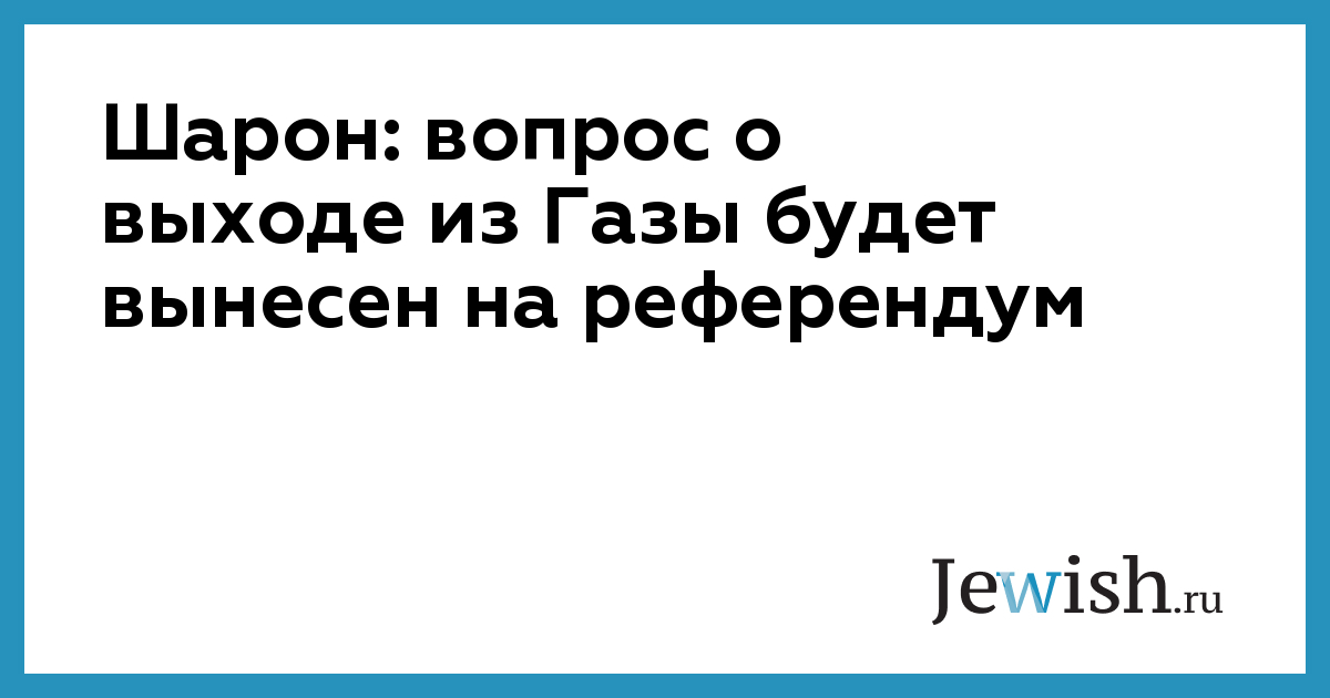 Шарон: вопрос о выходе из Газы будет вынесен на референдум