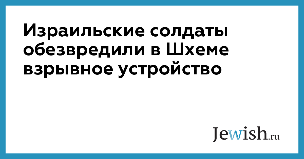 Израильские солдаты обезвредили в Шхеме взрывное устройство