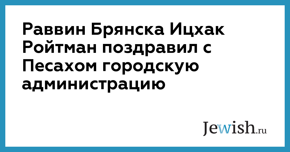 Раввин Брянска Ицхак Ройтман поздравил с Песахом городскую администрацию