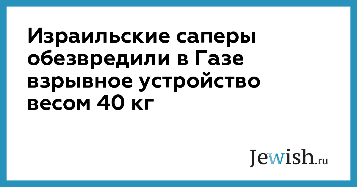 Израильские саперы обезвредили в Газе взрывное устройство весом 40 кг