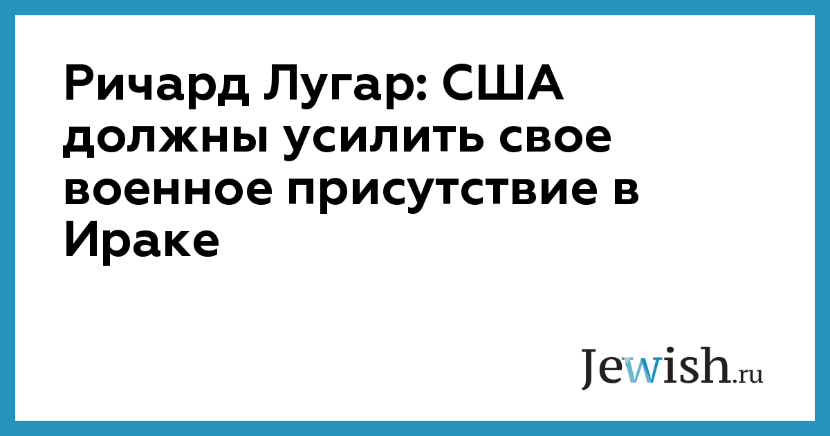 Ричард Лугар: США должны усилить свое военное присутствие в Ираке