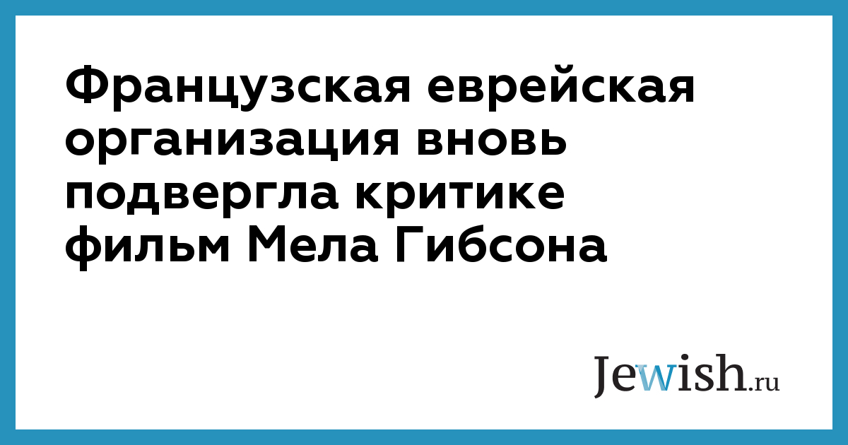 Французская еврейская организация вновь подвергла критике фильм Мела Гибсона