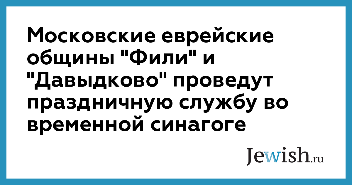Московские еврейские общины "Фили" и "Давыдково" проведут праздничную службу во временной синагоге