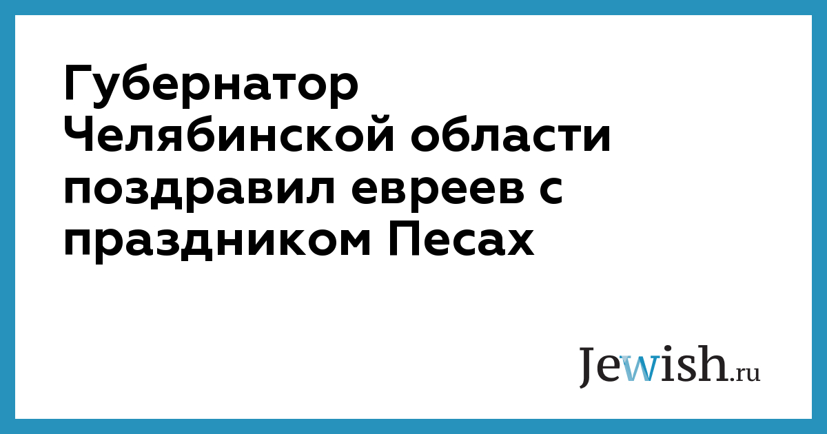 Губернатор Челябинской области поздравил евреев с праздником Песах