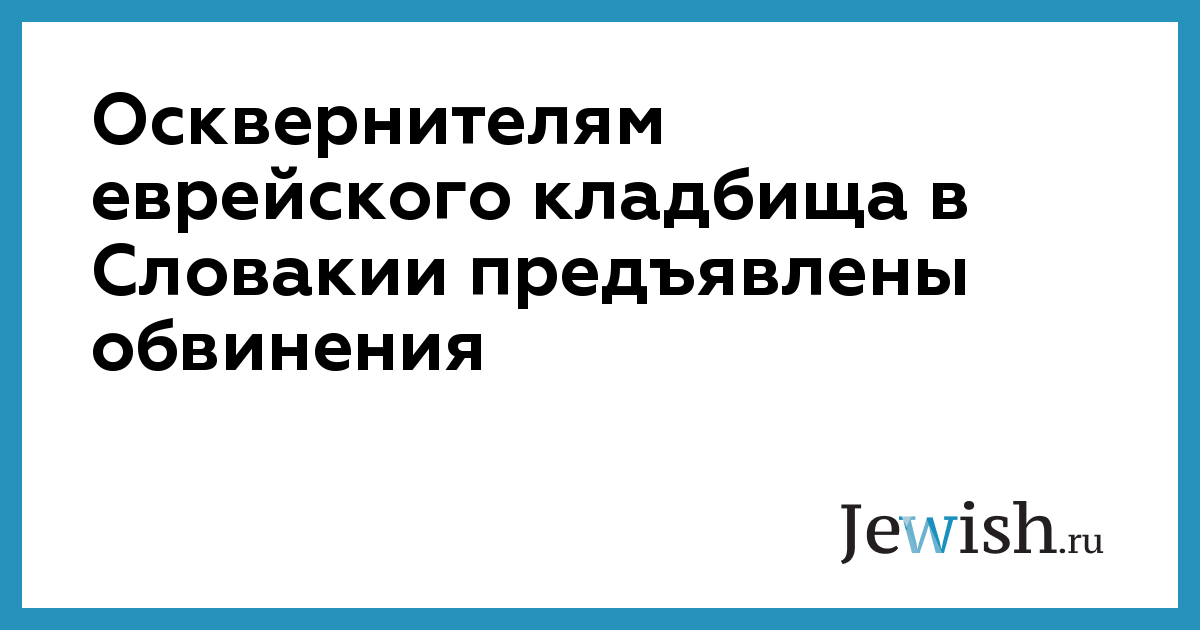 Двое молодых людей, имена которых не были сообщены полицией, обвиняются в в акте вандализма, совершенном на еврейском кладбище в городке Добзина в трехстах километров от Братиславы, в результате которого были повреждены несколько могильных камней, — сообщила во вторник представительница местной полиции Яна Демьяновичева.