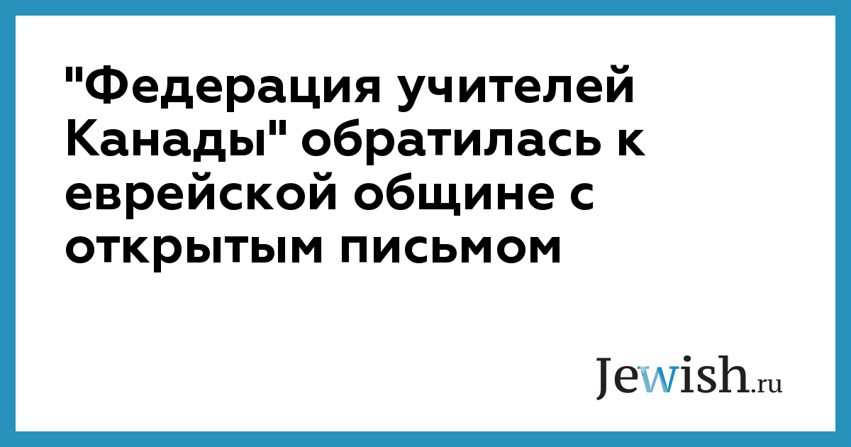 "Федерация учителей Канады" обратилась к еврейской общине с открытым письмом