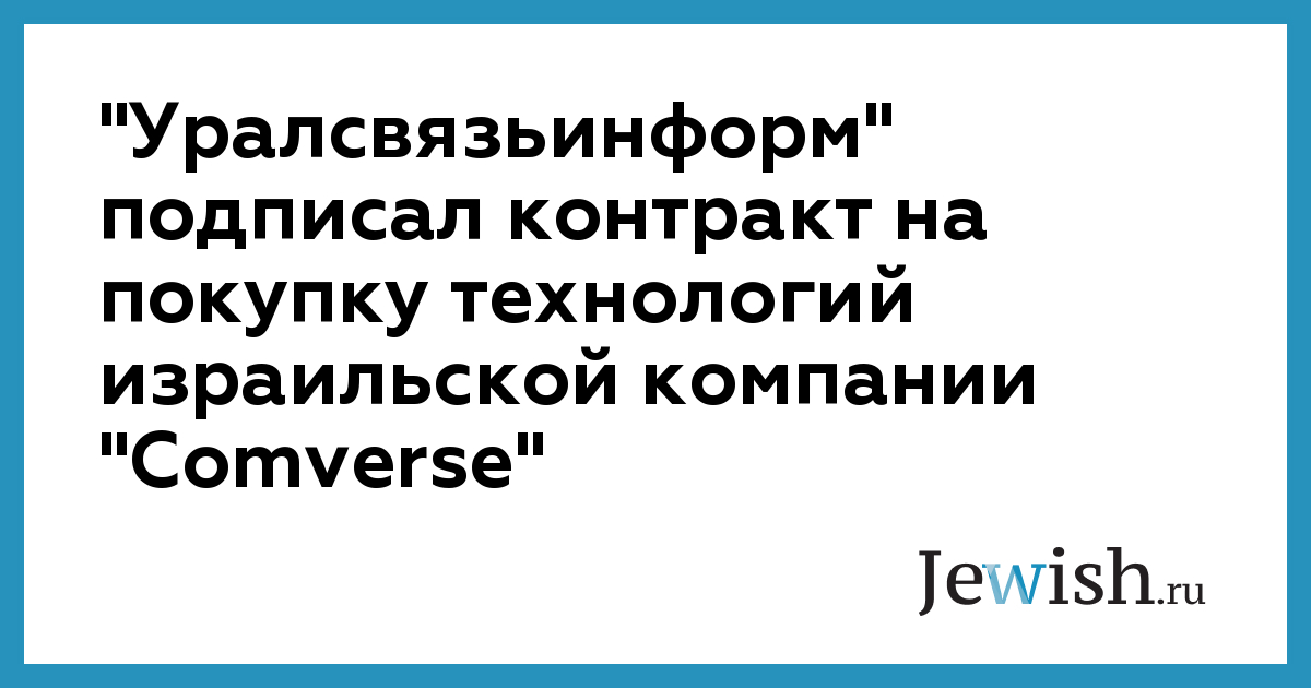 "Уралсвязьинформ" подписал контракт на покупку технологий израильской компании "Comverse"