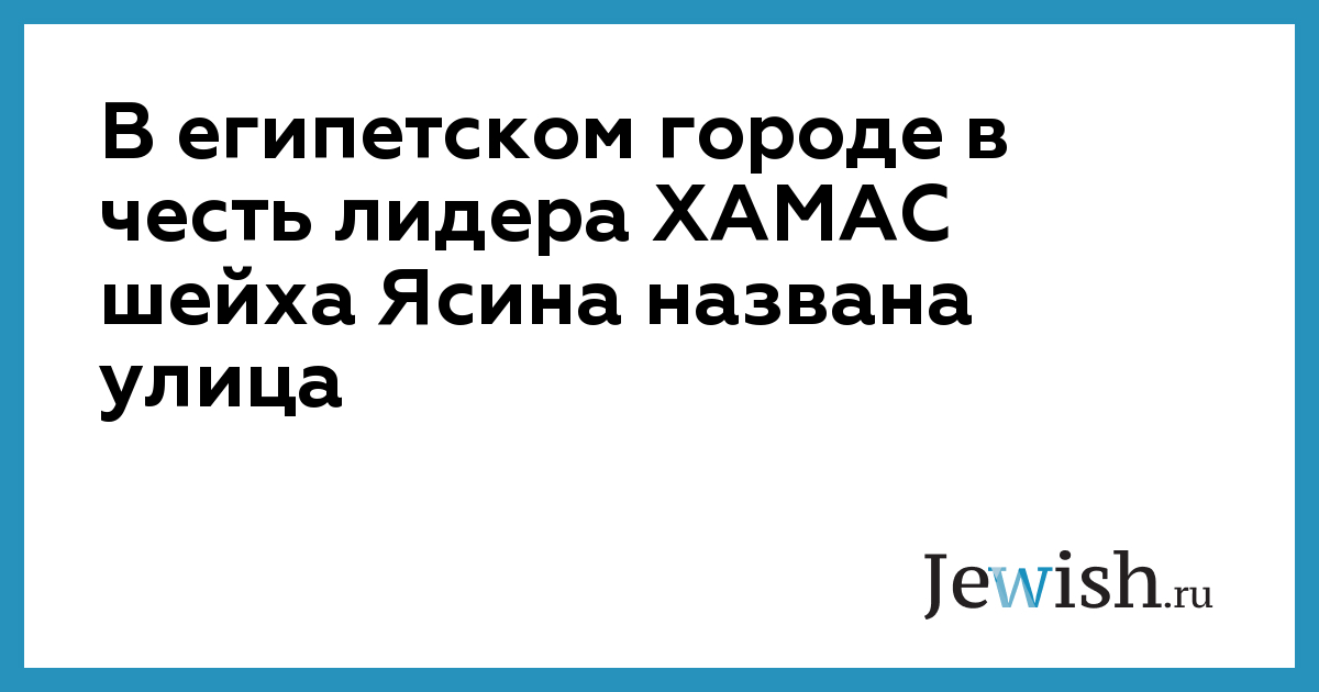 В египетском городе в честь лидера ХАМАС шейха Ясина названа улица