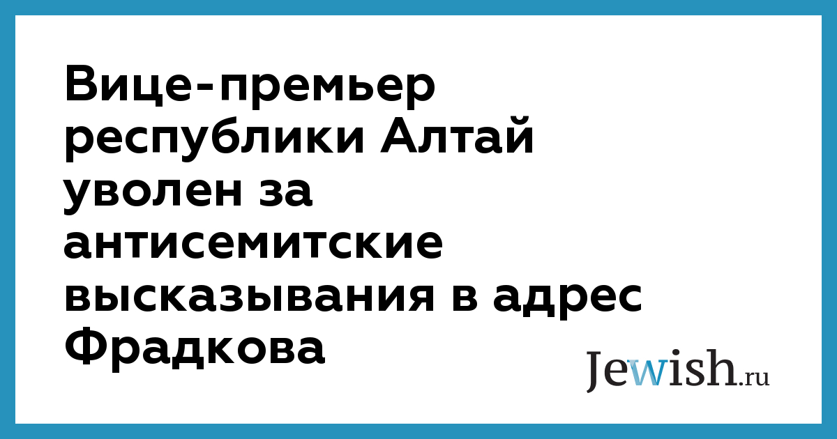 Вице-премьер республики Алтай уволен за антисемитские высказывания в адрес Фрадкова