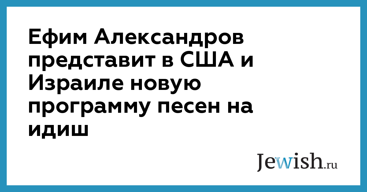 Ефим Александров представит в США и Израиле новую программу песен на идиш