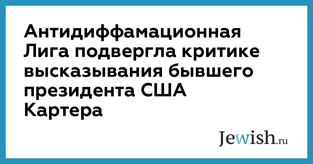 Антидиффамационная Лига подвергла критике высказывания бывшего президента США Картера
