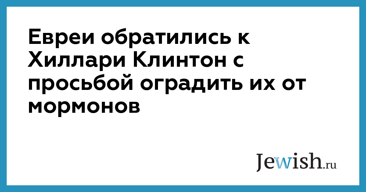 Евреи обратились к Хиллари Клинтон с просьбой оградить их от мормонов