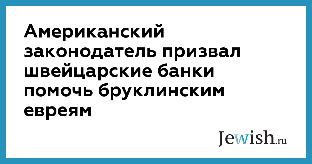 Американский законодатель призвал швейцарские банки помочь бруклинским евреям