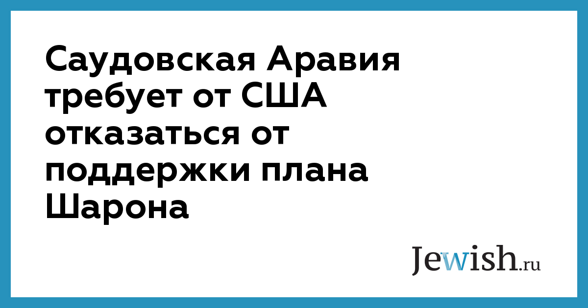Саудовская Аравия требует от США отказаться от поддержки плана Шарона