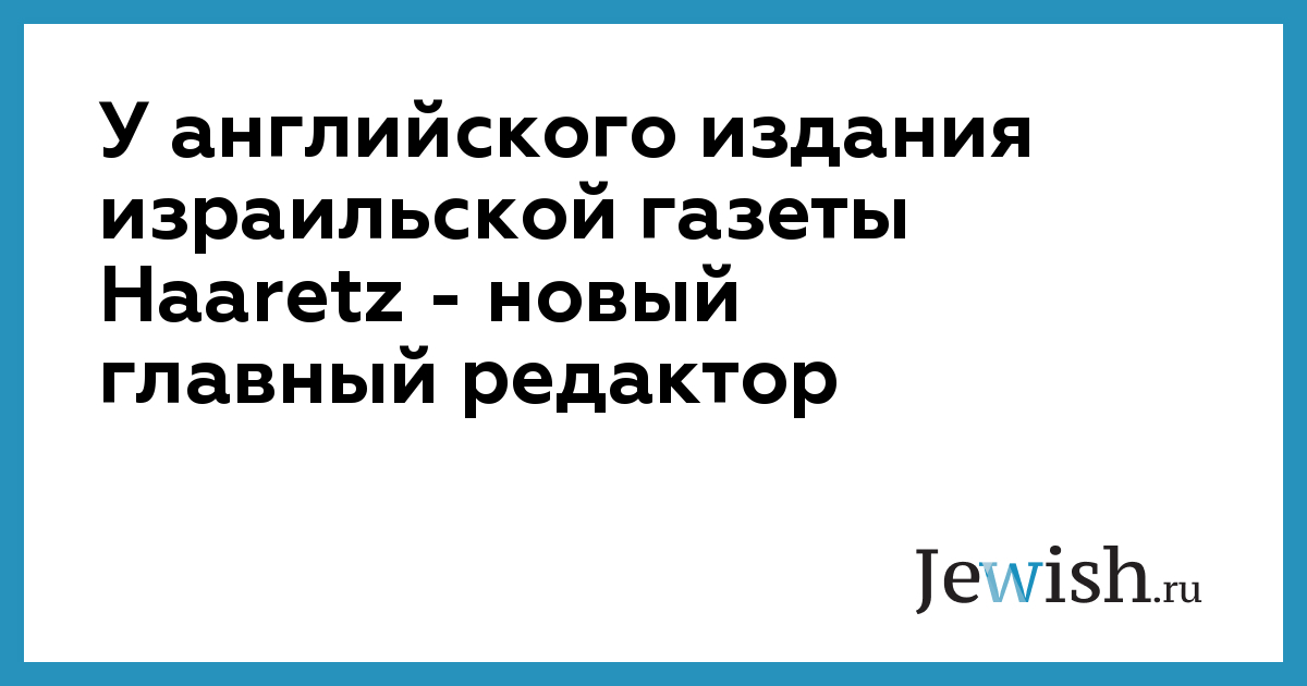 У английского издания израильской газеты Haaretz — новый главный редактор