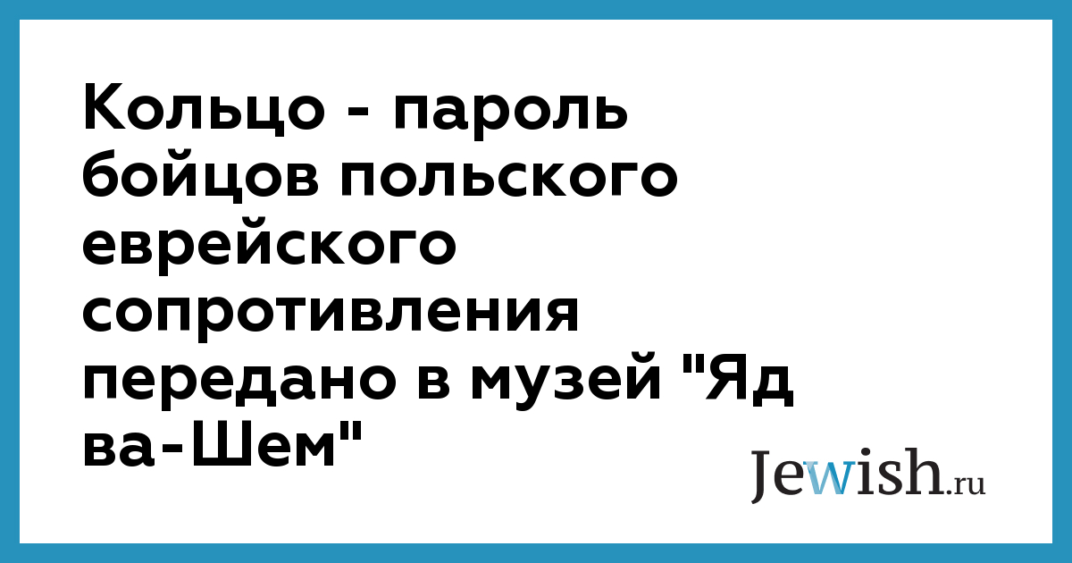 Кольцо — пароль бойцов польского еврейского сопротивления передано в музей "Яд ва-Шем"