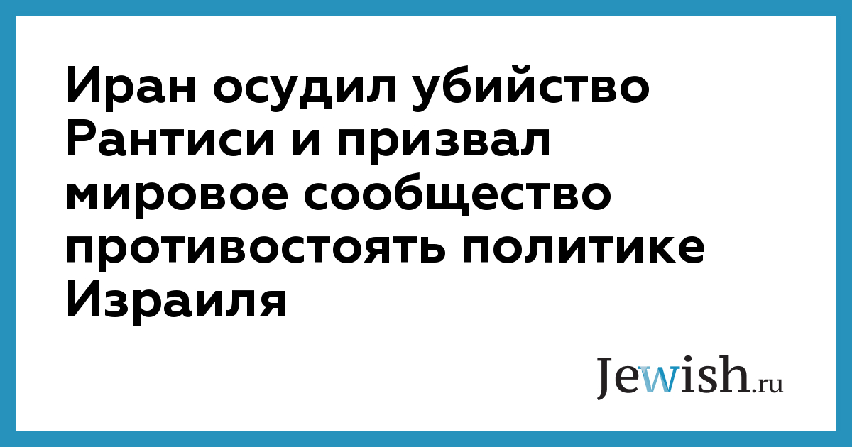 Иран осудил убийство Рантиси и призвал мировое сообщество противостоять политике Израиля