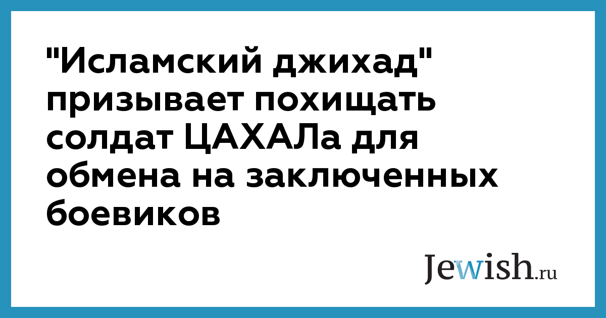 "Исламский джихад" призывает похищать солдат ЦАХАЛа для обмена на заключенных боевиков