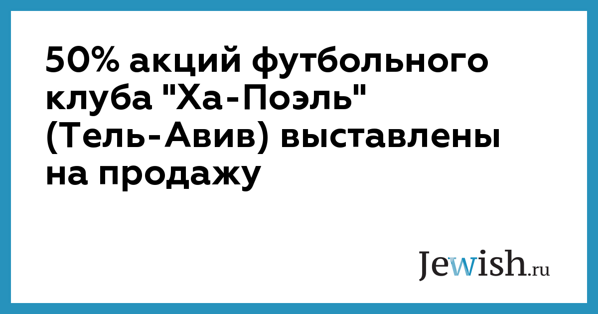 50% акций футбольного клуба "Ха-Поэль" (Тель-Авив) выставлены на продажу