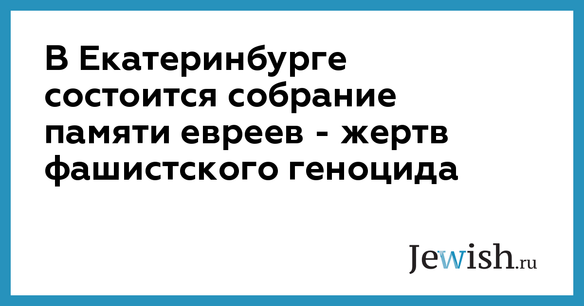 В Екатеринбурге состоится собрание памяти евреев — жертв фашистского геноцида
