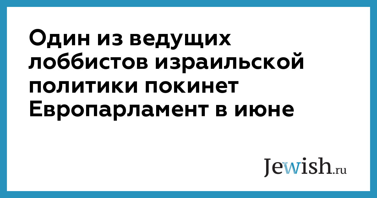 Один из ведущих лоббистов израильской политики покинет Европарламент в июне