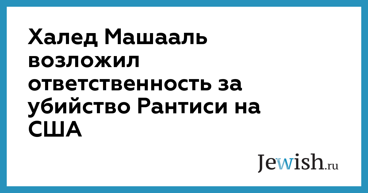 "Заключенные договоренности между Бушем и Шароном во время визита последнего в США — "зеленый свет" преступлениям руководства Израиля",- заявил Машааль. "Таким образом, ответственность за смерть Рантиси целиком лежит на Соединенных Штатах",- добавил он.